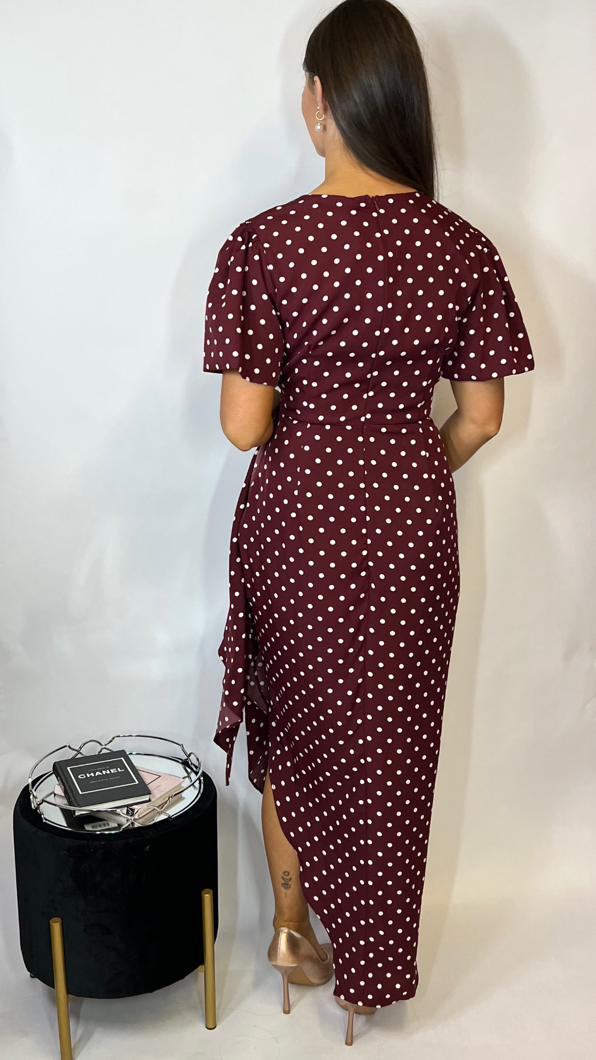 classic and beautifully feminine – the Drew Dress by Girl in Mind is a must-have for your next special occasion. This berry polka dot wrap-style dress features a flattering V-neckline, floaty short sleeves, and a waist-cinching tie belt that drapes effortlessly for a touch of elegance. The asymmetric hem adds movement and sophistication, making it perfect for weddings, parties, or any event where you want to stand out. Just pair with nude or metallic heels and you’re ready to glow.